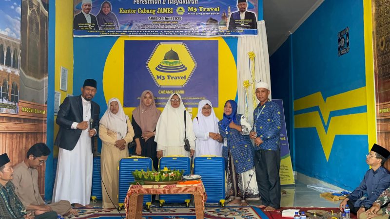 Acara peresmian berlangsung dalam suasana khidmat dan penuh kekeluargaan, Dengan Slogan “M3 TRAVEL Cabang Jambi, Travel Umroh Kito Orang Jambi ” Acara Ini Diawali doa bersama, kemudian dilanjutkan dengan pemotongan tumpeng dan pembukaan tirai logo M3 Travel sebagai simbol dimulainya operasional cabang.