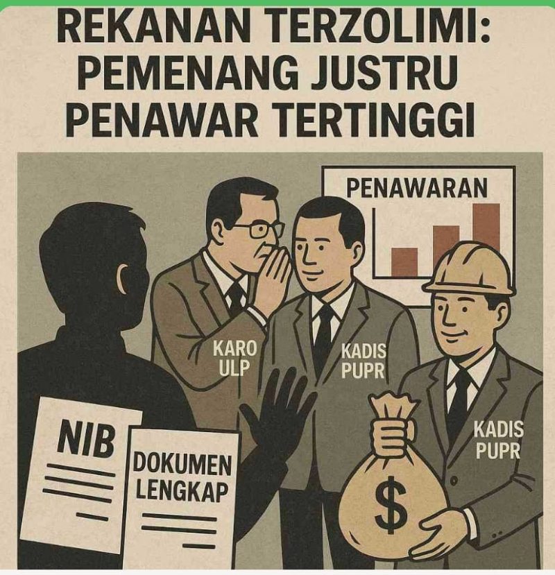 JAMBI, GENTALANEWS.COM – Dugaan pengaturan dalam proses pelelangan proyek di lingkungan Pemerintah Provinsi Jambi kembali mencuat. Sejumlah peserta tender menduga bahwa pemenang proyek telah diarahkan sebelum proses evaluasi dilakukan oleh Unit Layanan Pengadaan (ULP), dengan intervensi oknum pejabat dari Dinas Pekerjaan Umum dan Penataan Ruang (PUPR) dan Kepala Biro ULP.